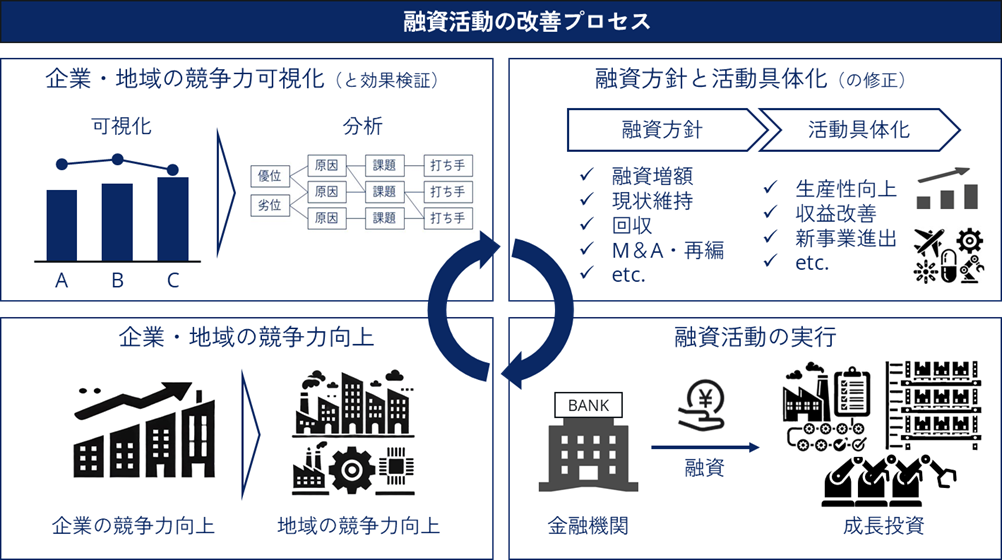 - 企業・地域への融資効果の検証を繰り返す、融資活動の改善プロセスの構築・運用